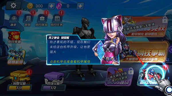 3、每天都可以探索地下城,每日的任务都可以完成,打造出强势的机甲军团。