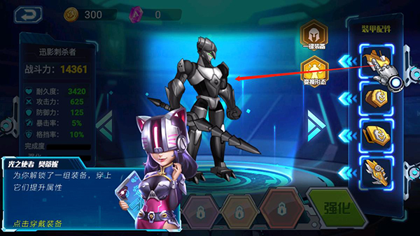 2、给机甲穿戴上装备可以提升它们的属性,点击移动装甲到机甲的身上;