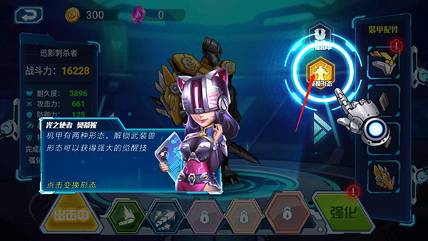 7、另外机甲还有两种形态,解锁武装兽形态可以获得更强大的觉醒技能,点击变换形态;