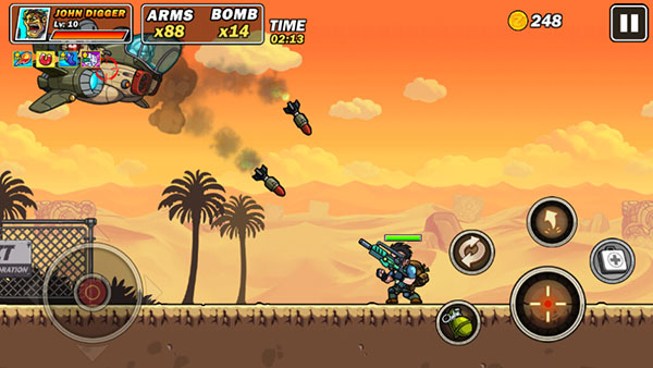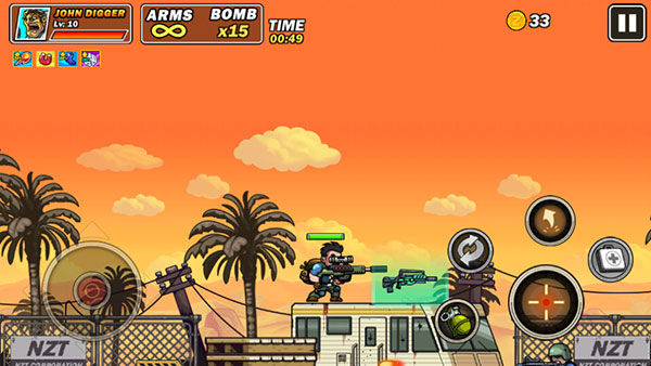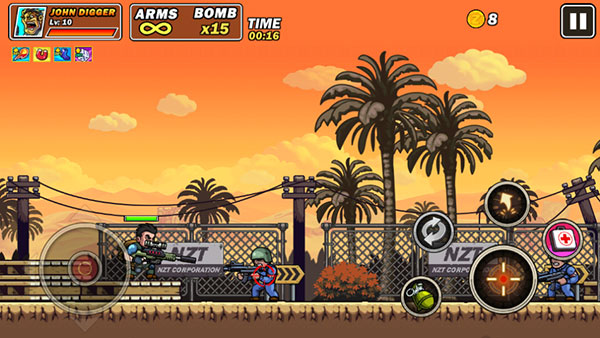 1、游戏采用了非常经典的街机玩法,玩家将扮演一名勇士,在枪林弹雨中展开一场激烈的对战2、控制角色移动跳跃躲避暴风雨的子弹,拿起你的武器,将你的敌人全部消灭,完成挑战