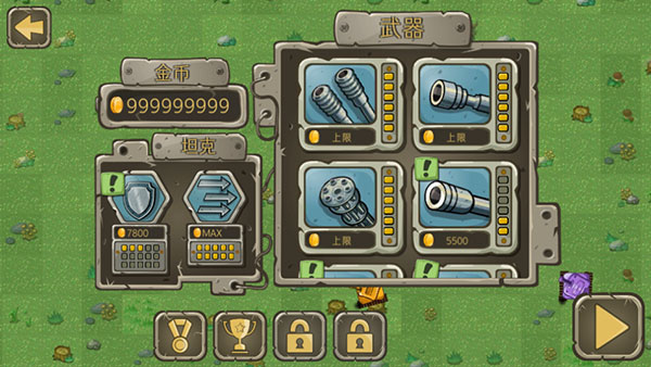 2、坦克武器游戏中大家除了需要掌握操作玩法以外,坦克的装甲和武器的强化也至关重要,利用金币可进行强化升级大大提示坦克的强度