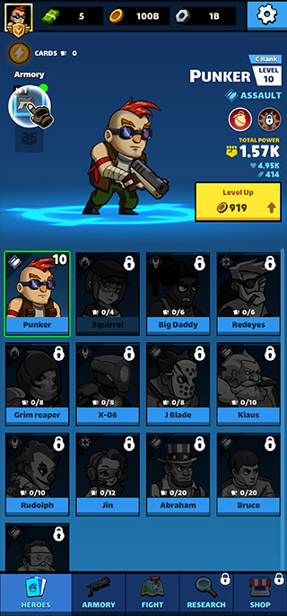 3、进入游戏之后,点击角色进行武器威力升级,也可以使用道具炸弹;