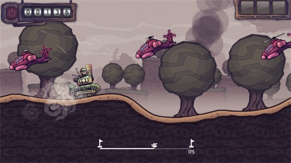 4、另外值得一提的是,游戏加入了进度条机制,玩家可以在屏幕下方直接看见自己的坦克所行进到的位置里重点还有多远,节奏感超强,快来试试吧