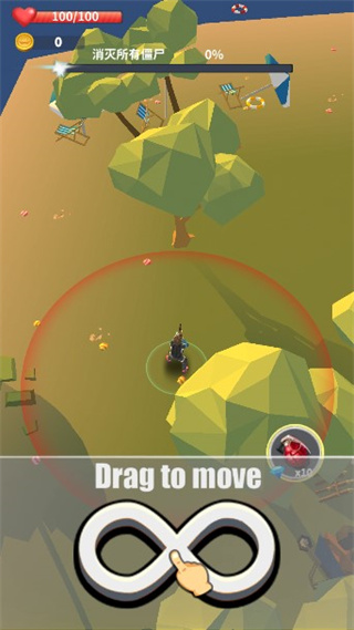1、下载疯狂僵尸快速射击最新版游戏,进入游戏,滑动操纵杆控制角色进行移动。