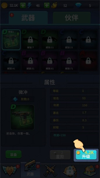 5、可以升级你的武器,强化武器属性,解锁更多类型的武器进入战斗。