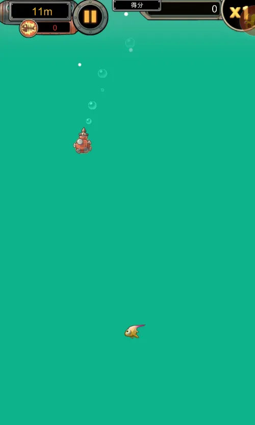 2、游戏开始玩家就要操作弹丸下潜,并且不被魔鱼碰到,但是到底之后玩家又必须快速转变操作思路