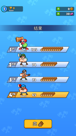 6、按照伐木的名次决定可获取的木头,当你得到第一名时,可以获取到落后你的用户的木头,可以将其卖出换取金币