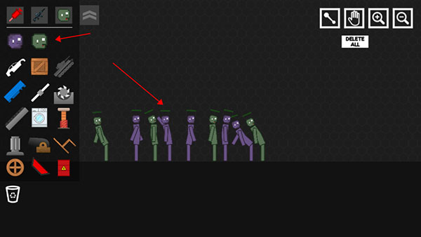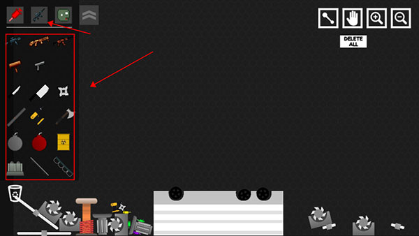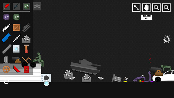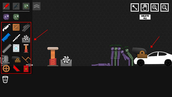 2、造好僵尸后可选择工具栏里面的各种奇葩武器来蹂躏僵尸