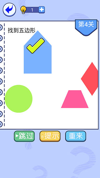 第4关,将三角形和长方形叠加起来就行啦,没有就自己动手实践