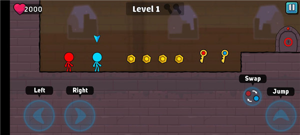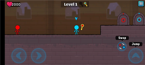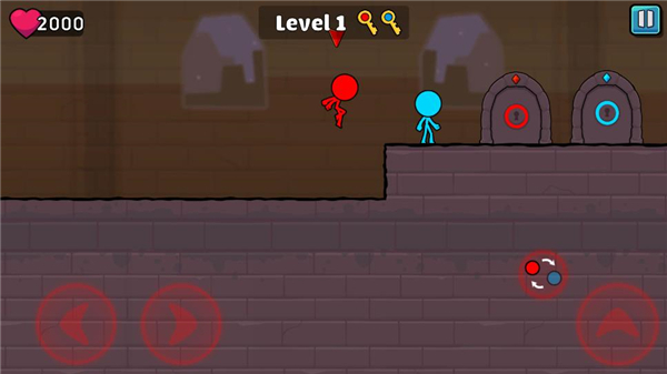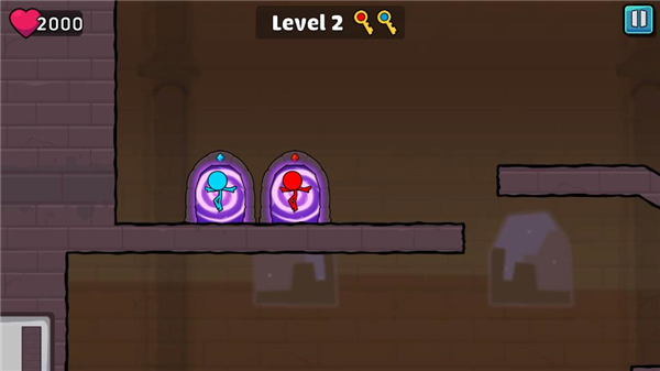 3、玩家在游戏里面需要帮助红色和蓝色的两个小人,