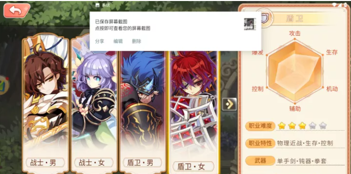 以防御为主使用,盾为防具的盾卫拥有惊人的防御力,在战斗时通常是承担怪物大部分的主要核心,是组队打BOSS中不可缺少的职业。代表属性为体力!可以使用钝器、单手剑与盾为武器,通过武器与技能的搭配发展出如防御型的防御型盾卫、攻击与防御均衡的攻击型盾卫等不同特点的盾卫职业。