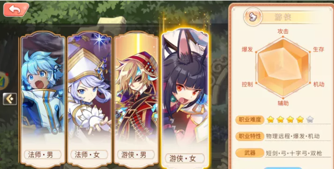 灵活的身手,闪电般的速度、让人羡慕的运气,组成了一个充满了特色的职业,游侠。这个职业没有战士那样如同烈火般的攻击,没有盾卫铁壁一样的防御,也没有法师强大的魔法,他们拥有的却是让所有职业羡慕不已的幸运。他们可以使用近距离攻击的拳套、匕首成为一名刺客类职业,也可以使用远距攻击的弓与弩成为一名远程攻击职业,更可凭借各种生存技能畅游全岛成为一名宝物猎人。