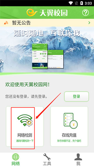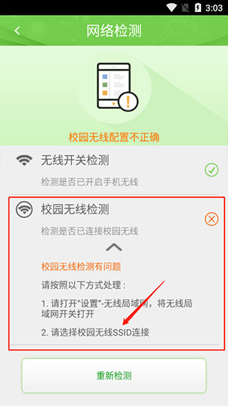 2、点击开始检测,等待检测结果,如遇到以下情况,请连接校园网,如果还是不行就联系管理员