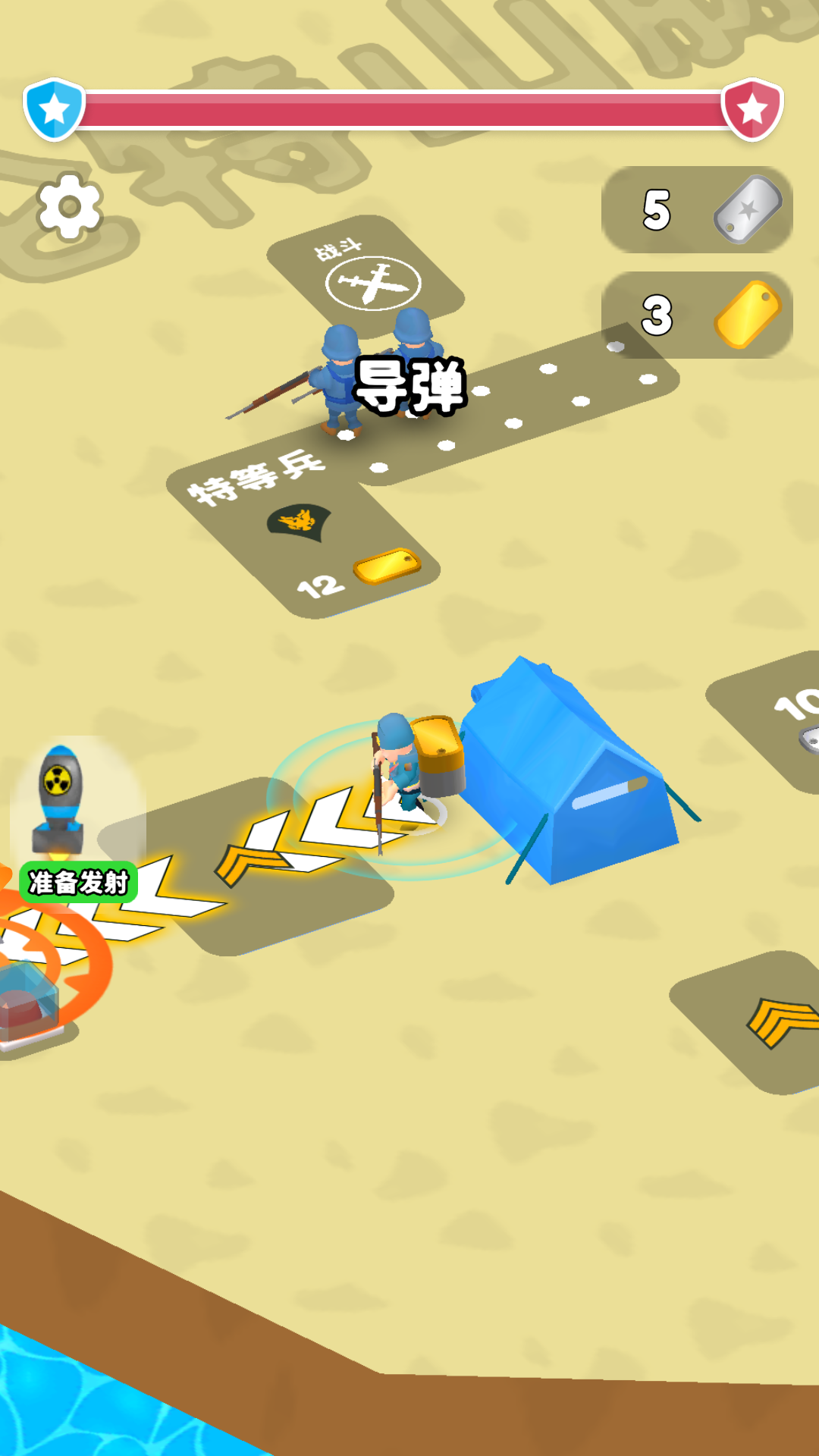 这个游戏看起来挺有意思的,是一个益智策略战争游戏,叫做《小小指挥官》。玩家可以扮演军事指挥官,建造兵站、招募士兵、提升等级,然后去夺取敌人的旗帜占领地图。游戏中有各种兵种和弹头可以选择,得根据地形和敌人情况灵活调整战术。