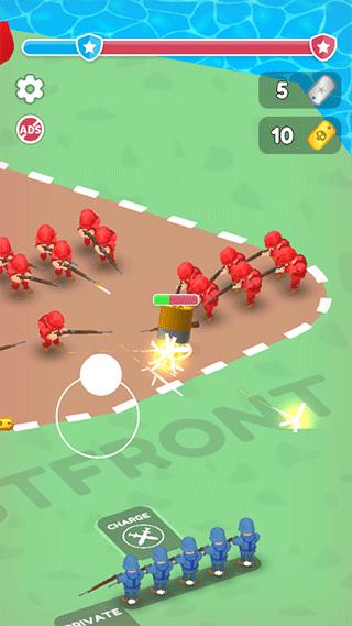 游戏操作简单,画面也挺清新,但关卡设计有点挑战性,需要动脑筋想想怎么攻打。里面有很多资源可以收集,比如金块银块,杀敌还能获得金币奖励。玩法上,通过摇杆控制人物移动,站在攻击图案上就会自动开火。记得不要让敌人包围了,否则会被集火秒掉。