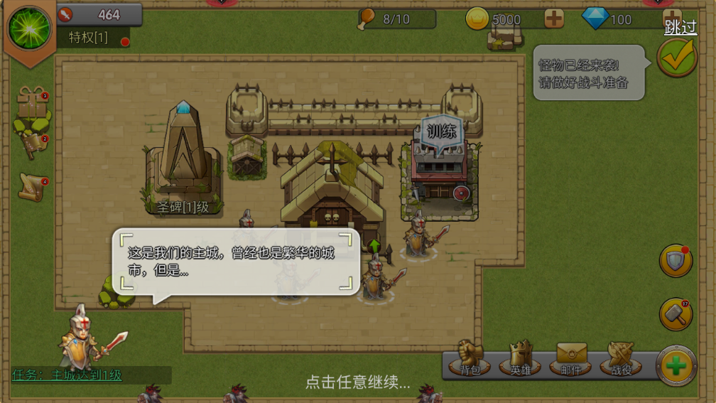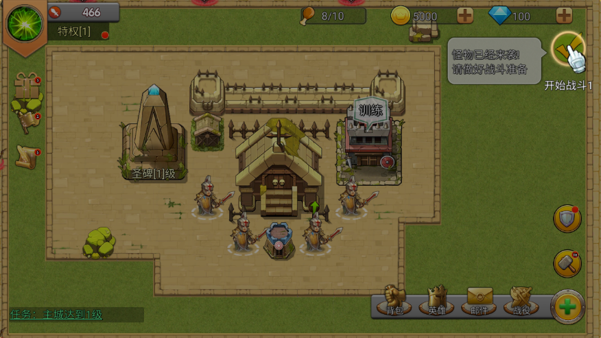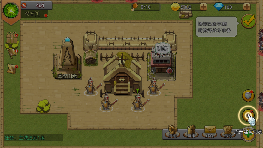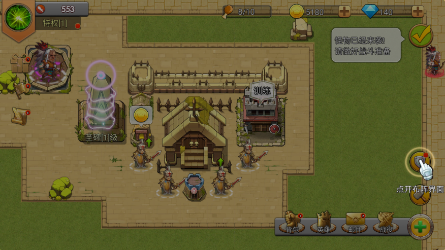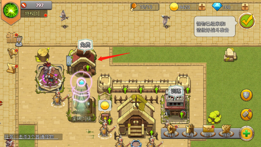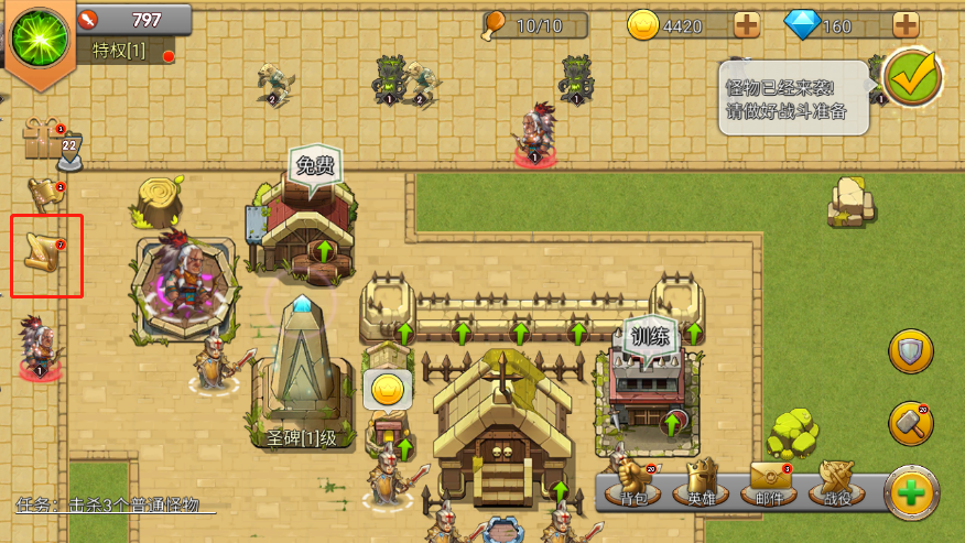 4、很实用的一个技巧,当你城堡周围刷的怪物你不想打的时候,点击战役再退出来,怪物种类会刷新。可以用来刷高等级怪物出高等级装备或者某些无伤好刷的怪物。