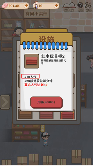 ·除了经营店铺外还可以通过赚钱来升级和装修店铺,提升店铺收益。