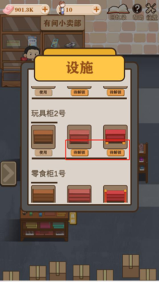 4、点击想要解锁的设施进行解锁;