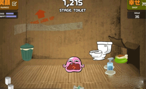 答:宠物稍微大点后,会出现马桶等物品,商店里卖东西也更多了,如下图所示: