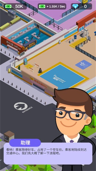 1、下载进入客运大亨游戏,通过助理的详细介绍了解工厂。