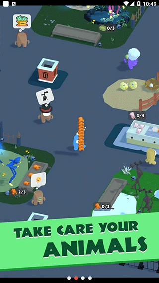 游戏的玩法也很丰富,从养动物到清理公园再到招人赚钱,每一步都需要仔细考虑。尤其是随着动物园规模扩大,怎么分配资源、管理员工都得动脑筋。整体操作简单,但难度也有点高,需要一步步来才能慢慢发展。