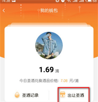 3、在钱包中就可以看到自己的圣酒余量,点击出让,生成订单;