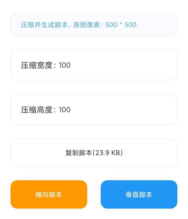 如果图片过大,软件会给出一个默认的压缩值,或者自己填写需要的数值,然后点击下面的按钮选择生成脚本。