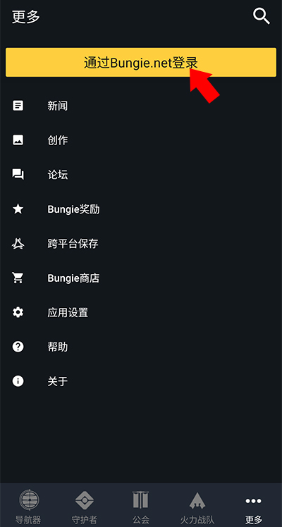 1、在本站下载并安装Destiny 2 Companion,打开应用后来到下方界面,我们点击上方的通过Bungie.net登录按钮进入登录界面