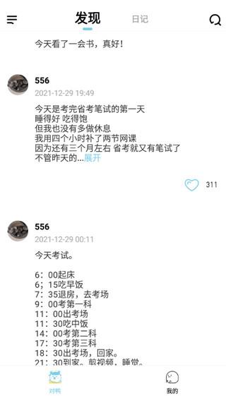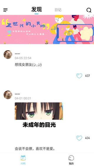 在对鸭日记,你可以记录每一个喜怒哀乐,记录每一个重要的日子,可以和大家分享你的生活日常,记录自己每天完成了的事情,对自己每日完成事项进行打卡,不管什么信息都能在软件中记载,查询起来也很方便,有需要的用户快来下载吧,说不带还能在这里遇到生命中的那个TA~