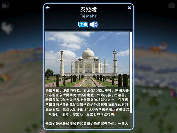 1、酷玩地球app的操作方法很简单,点击国家或者标记就可以查看详细介绍、滑动屏幕就可以转动地球、收缩和拉伸就可以缩放地球;