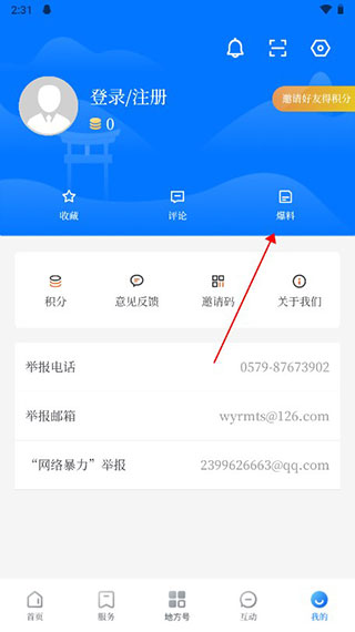 3、进入我的爆料界面后,然后点击【我要爆料】。