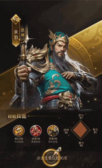 3、新手们获得的第一名武将都是关羽,是不是很帅。