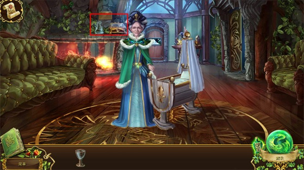 7、拿着冷静剂回到客厅,皇后的继母坐在沙发上,我们点击皇后的卧室,会有一段剧情,之后门被锁住了,皇后的继母显然受到了惊吓,我们把冷静剂给她。