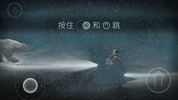 2、在暴风雪中碰到北极熊根据提示滑动屏幕往前奔跑