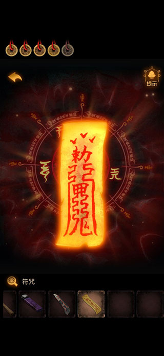 用【毛笔】把左边涂上朱砂,拖动黄符到印上,获得【符咒】。