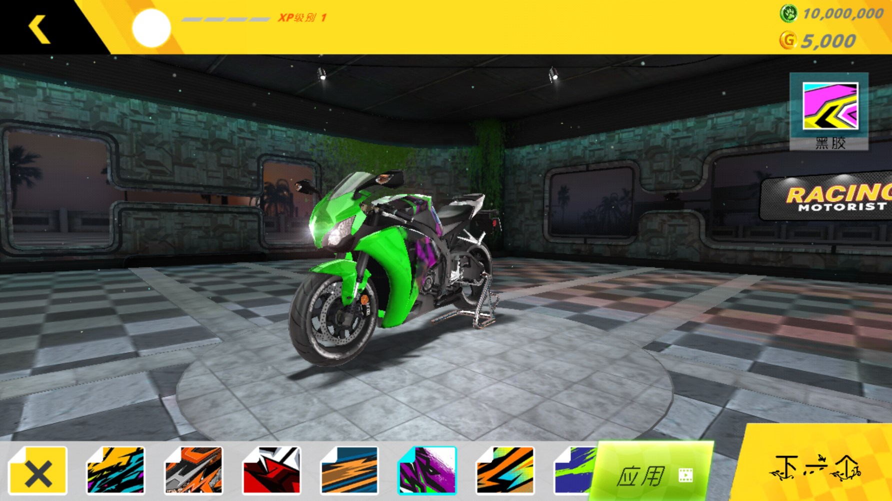 4、点击“下一个”,可以为自己心爱的摩托贴上自己喜欢的车膜哦