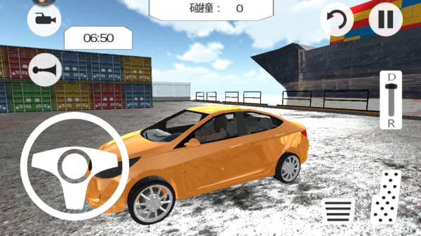 4、通过油门、刹车、方向盘、档位、喇叭、游戏视角进行操控赛车前进,完成关卡