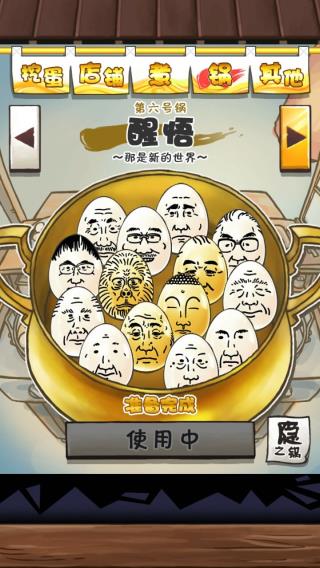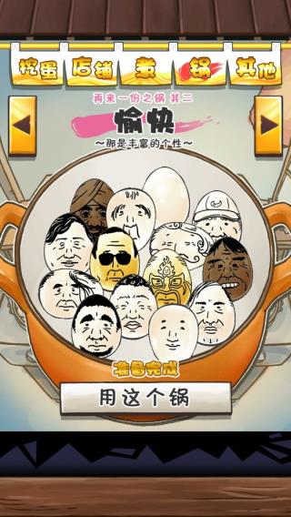 3、游戏中的鸡蛋、盐和锅等道具都可以购买或者解锁,集齐一锅指定的大叔,就可以开启另外的锅。