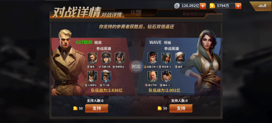 3.每场比赛所有玩家可选择一名对战的玩家进行支持,支持玩家获胜则获得双倍支持奖励,若失败则返回支持投入。