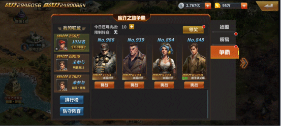 2)争霸是争夺更高的排名,每日结算一次争霸排名,获得钻石的道具奖励。