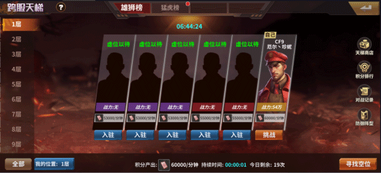 2.玩家被击败后,会被驱逐至往后的楼层中的空缺位置,每日可有20次挑战机会。