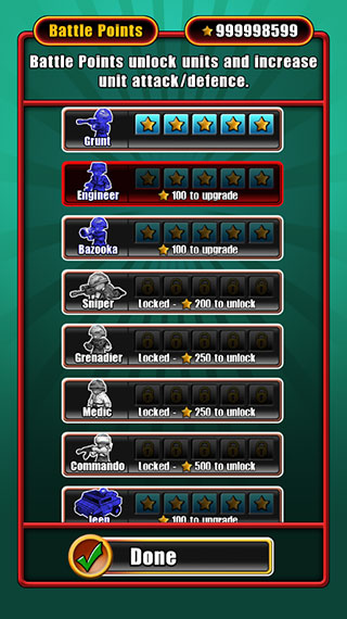 7、建议最先将75的步兵 火箭筒兵 手雷兵 400的巡航舰 300的chopper战斗机升级满 特别是步兵和火箭筒兵 价廉物美