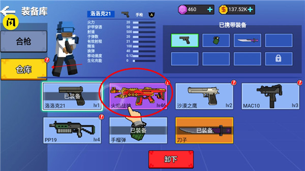 6、接着我们点击仓库来到我们最开始领取到枪械,足足有46级之高,大家可以想想合成要多久才能够拿到,我们装备上;