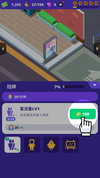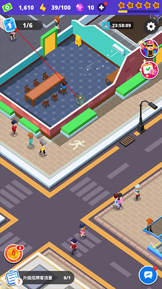 4、生意越做越大,分店开在街区、商场、沙滩、太空,让顾客的群体更加广泛,让每个喜欢电玩的顾客都能玩到。