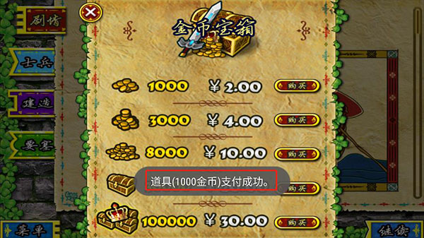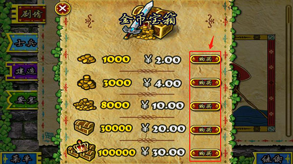 2、里面有各种金币套餐,在想要的套餐中点击购买;