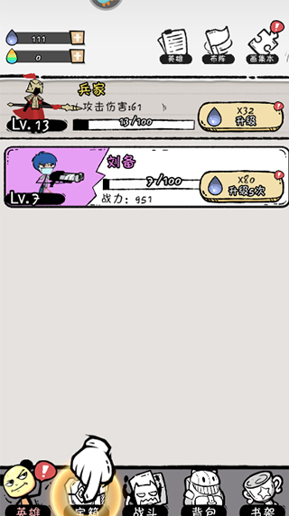 6、然后在英雄界面可以对英雄和主角进行升级培养