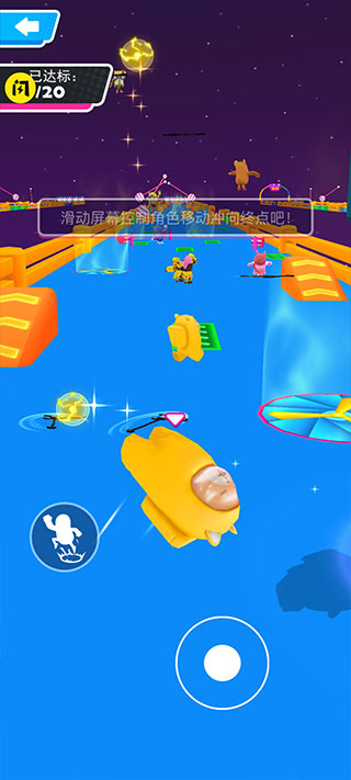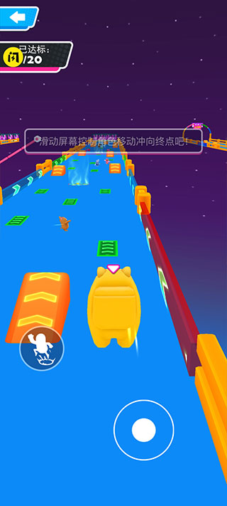1、这是一款魔性好玩的跑酷游戏,操作造型可爱的角色一路奔跑;2、小心躲避关卡中的机关陷阱,还能使用道具干扰你的对手;