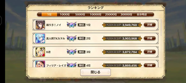 竞技场:分为普通场(带排行榜)和EX场(无排行榜)。都是每天可以打3次,双场一共6次,可以获得竞技场币和累计分数奖励,上排行榜可以获得额外奖励。(切勿使用修改器,我加过许多榜一的神仙,都是排行榜结算之后再也没有上过线,应该被封了)。关于竞技场配队问题,可以上(https://gamewith.jp/konosubafd/)查看队伍推荐,此链接为素晴手游wiki,日服进度。日服排行榜前十的大佬有一位是哔哩哔哩的up主,可参考他的队伍,UID:567912455。也可以查看排行榜1-30000名次的玩家配置。