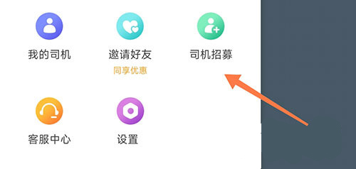 1、同样是在呼我出行左上角弹出的选框中,点击司机招募;