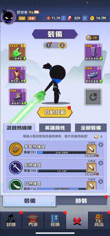当你玩游戏玩累了,可以选择一键挂机,让火柴人自己玩,而这并不意味着机械地战斗,火柴人依旧会凭借走位来躲避敌人的攻击,甚至有时候比人为操作更加灵活。